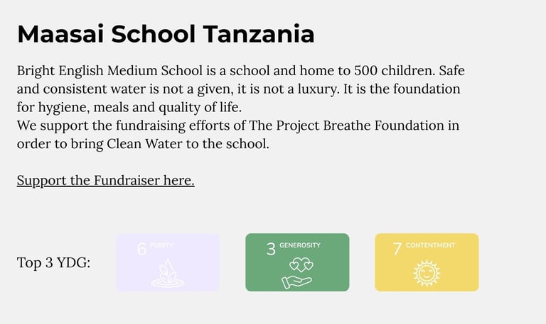In addition to the Sustainable Development Goals, we intend to focus our efforts along the ideals of a Yogic way of living. These ideals have been formulated by the Sage Patanjali as the "Yamas & Niyamas".
